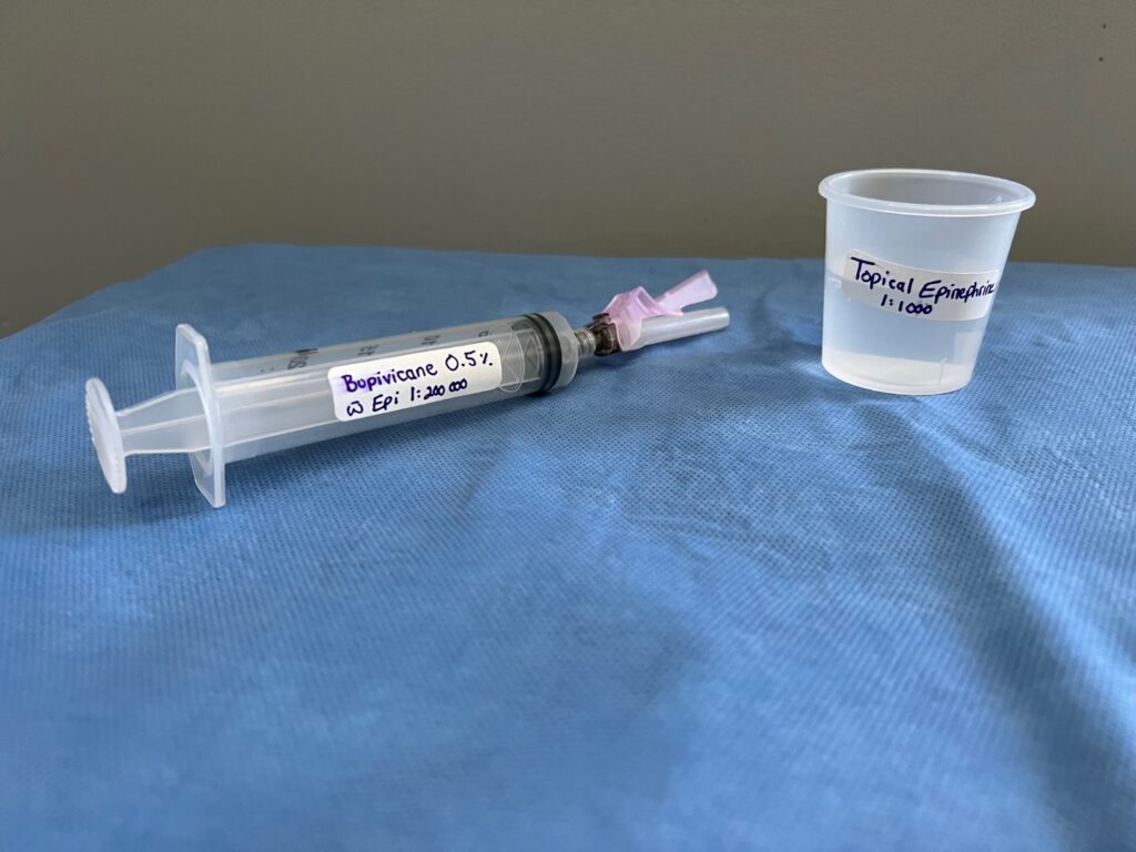 - Discard any unlabeled syringes or containers that are on the sterile field.